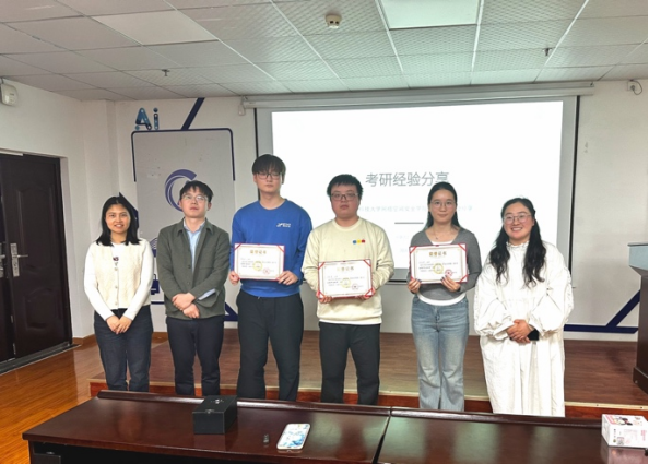 王兆静、杨凯、王晨老师结合分享内容对同学们提出建议:尽早明确发展目标,科学规划学习路径;夯实专业基础,补齐能力短板;坚持高效学习与复盘总结,提升自主学习能力;保持积极心态,在交流互助中共同进步。分享结束后三位老师为三位优秀学子颁发优秀学生标兵荣誉证书,表彰他们在学业与考研备考中取得的优异成绩,发挥良好的示范引领作用。